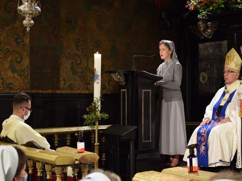 Na początku s. Marzena Dzikowska skierowała do uczestniczących w uroczystej Mszy Świętej słowa powitania i przedstawiła krótki rys historyczny naszej obecności na ziemiach polskich.