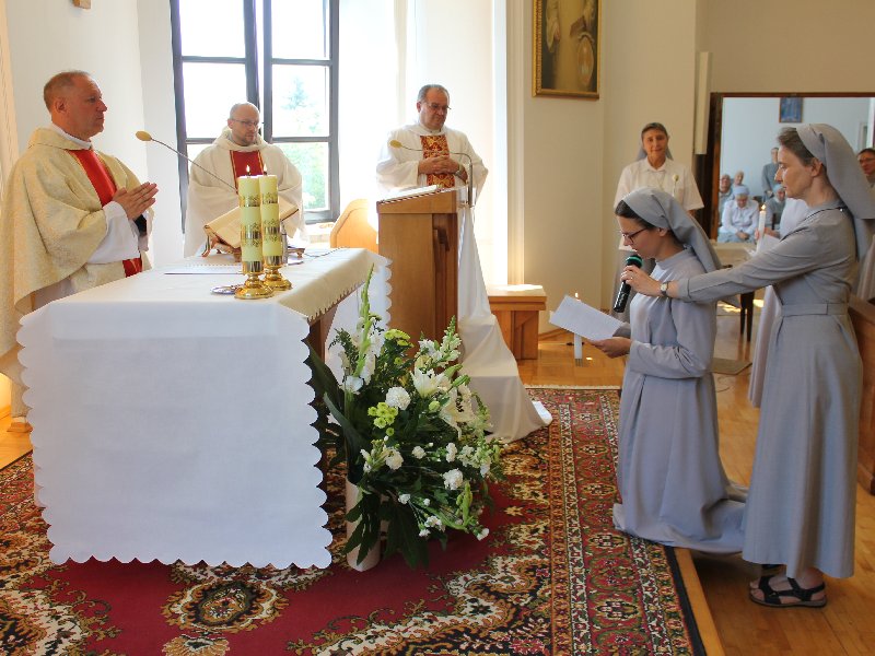 W wigilię Uroczystości Wniebowzięcia Najświętszej Maryi Panny, na ręce Siostry Przełożonej Prowincjalnej, Marzeny Dzikowskiej, fmm w naszym domu zakonnym w Łabuniach k. Zamościa, dwie siostry nowicjuszki: Mirosława Ochlak i Anna Zając, pragnąc oddać się Panu Bogu na wyłączną służbę, złożyły swoje PIERWSZE ŚLUBY ZAKONNE czystości, ubóstwa i posłuszeństwa na trzy lata.